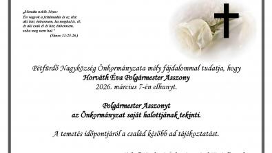 Pétfürdői Közösségi Ház és KönyvtárPétfürdő Nagyközség Önkormányzatának Képviselő-testülete 2026. február 26-án (csütörtökön) 16:00 órai kezdettel tartja munkaterv szerinti ülését a Pétfürdői Közösségi Ház és Könyvtár (8105 Pétfürdő, Hősök tere 5.) tanácstermében.