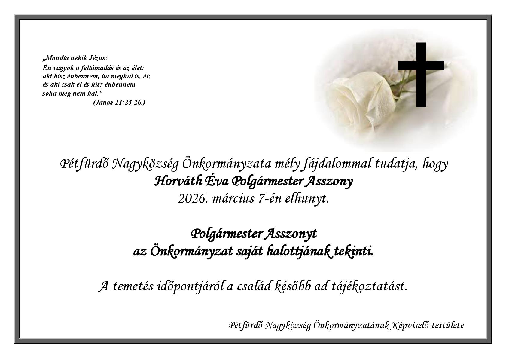 Gyászjelentés - Horváth Éva